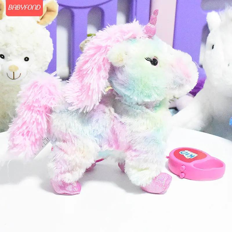 HIGH QUALITY Children's electric plush toy doll unicorn can sing and walk electronic machine color with remote c